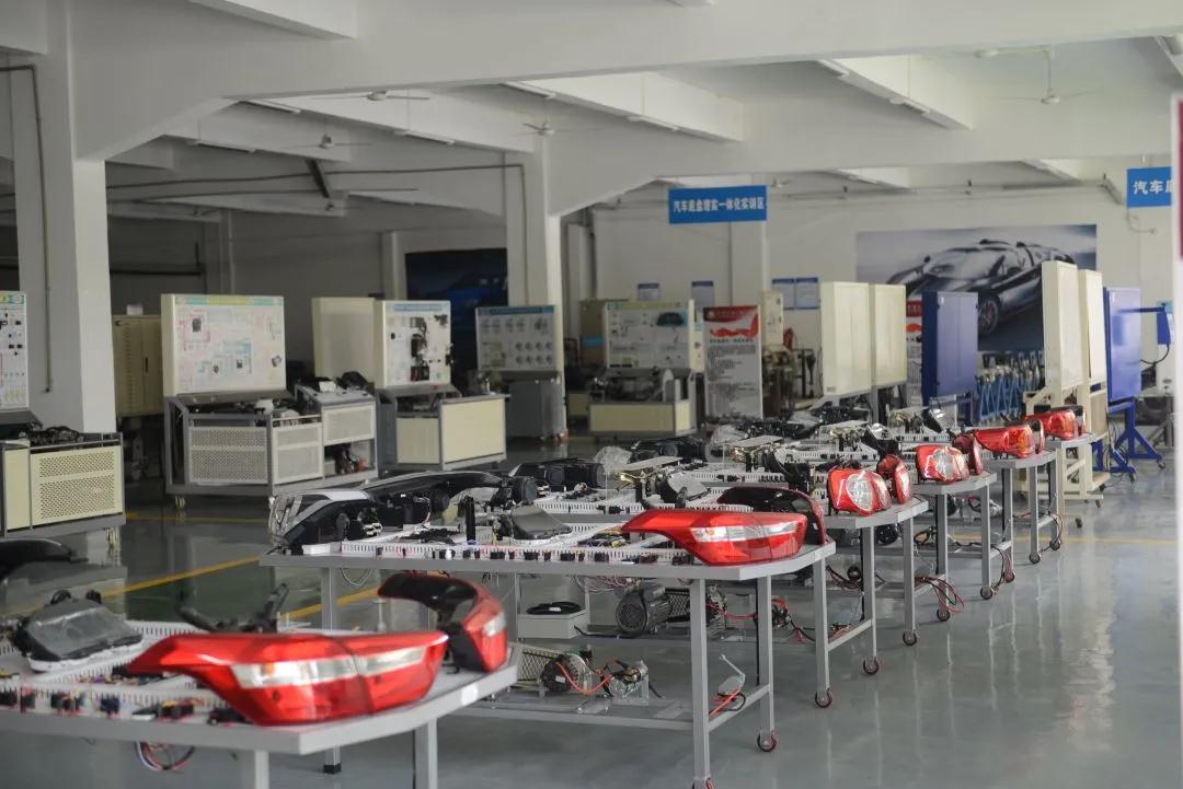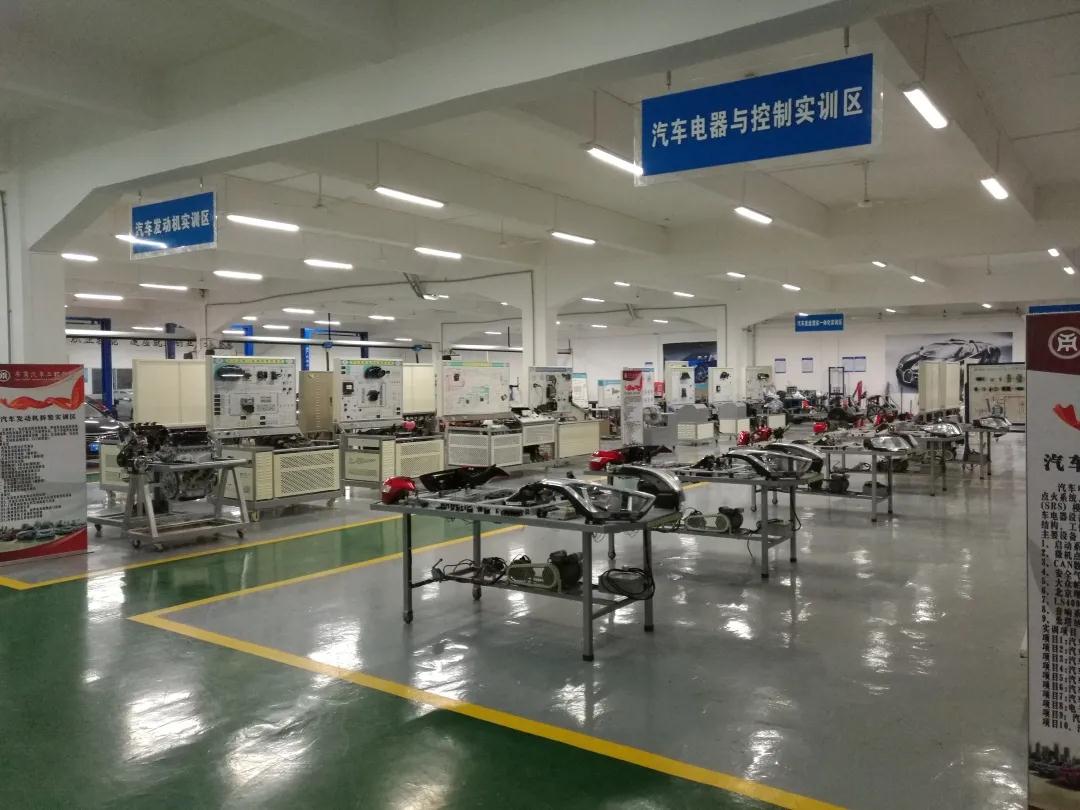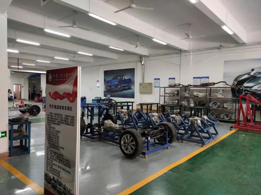 实训室建设有占地4578平方米的汽车教学实训中心,现有设备共计超600台套,设备总值717.39万元,建立了8个一体化实验(训)室,实训工位数为388个。具体包括汽车营销实训中心、汽车发动机一体化实训区、汽车维修实训区、汽车检测实训区、汽车仿真实训室、汽车底盘实一体化实训区、汽车电器一体化实训区、新能源汽车一体化实训区,集教学、实训、考核为一体的综合实训室。
