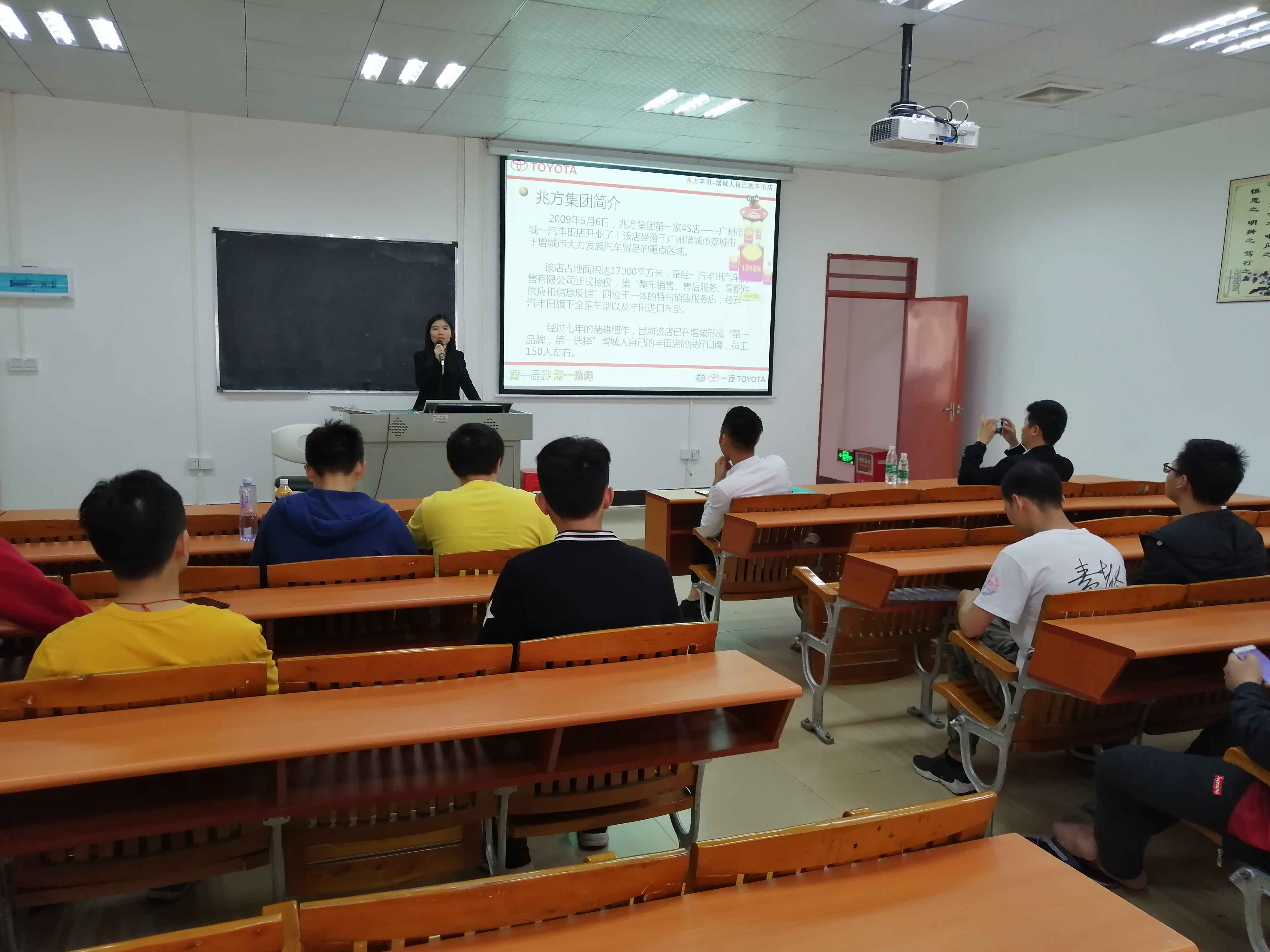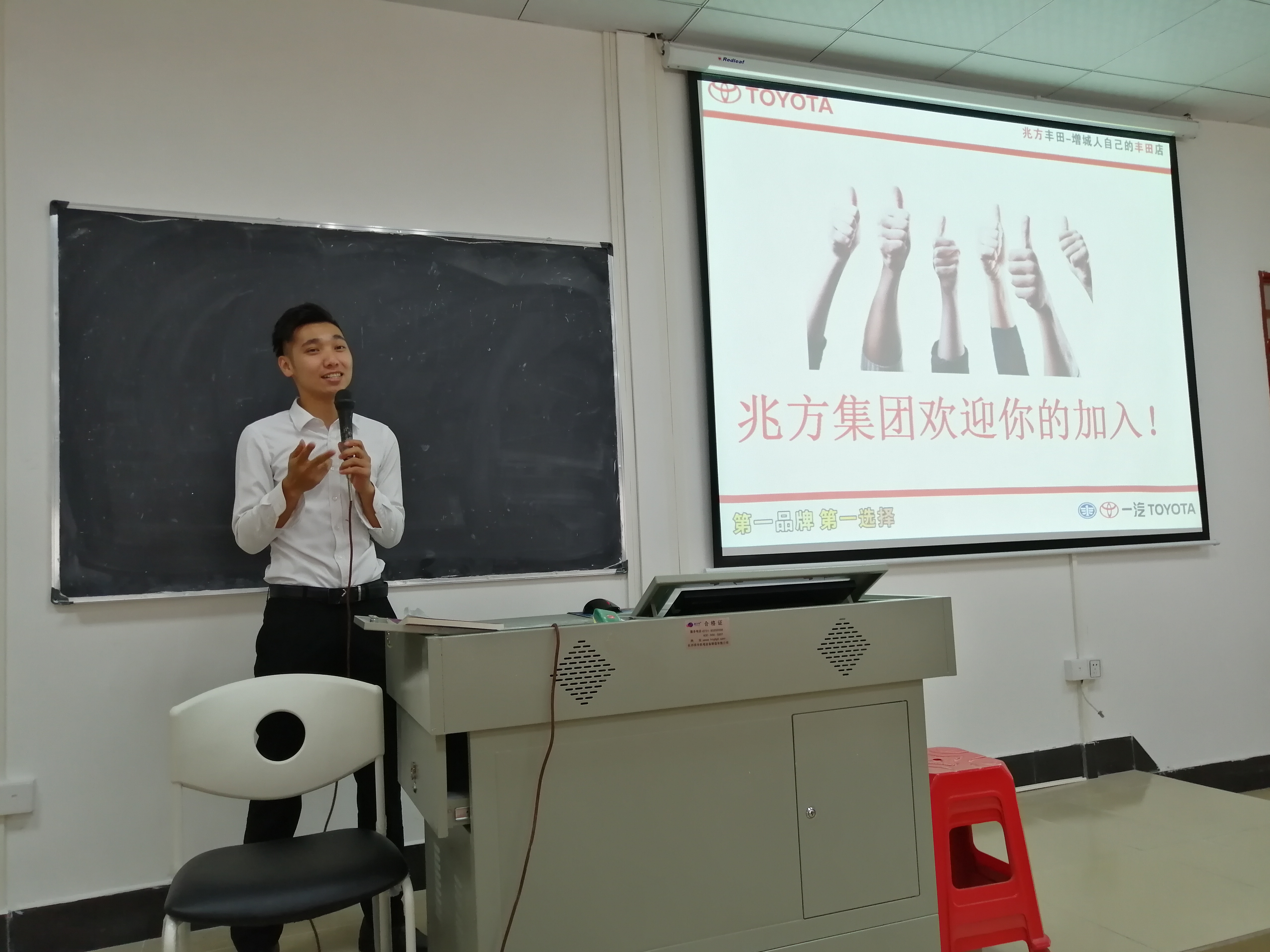 随后,兆方丰田汽车销售公司的经理们来到201多媒体课室,与16级学生进行了顶岗实习沟通交流,并现场对意向学生安排了顶岗实习面试。经理们先作了公司简介以及本次计划招收顶岗实习的岗位与要求。