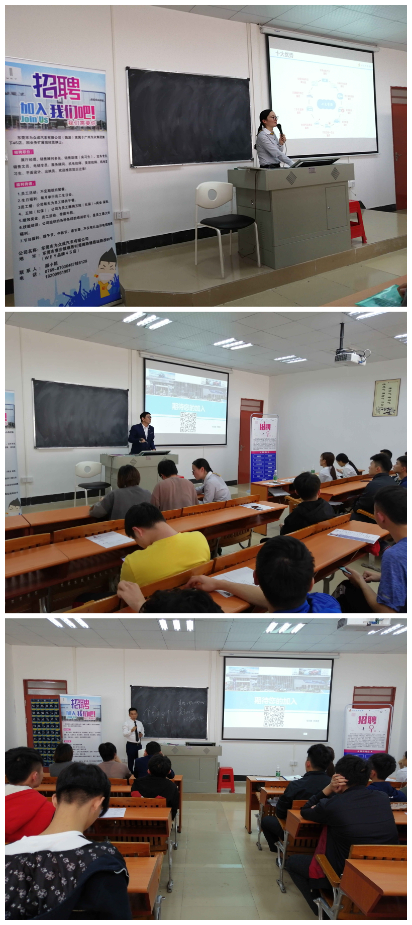 随后,广州为众汽车集团公司的经理们转移到201多媒体课室,与全体16级学生进行了顶岗实习沟通交流,并现场对意向学生安排了顶岗实习面试。经理们先作了公司简介以及本次计划招收顶岗实习的岗位与要求。