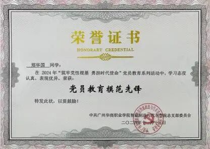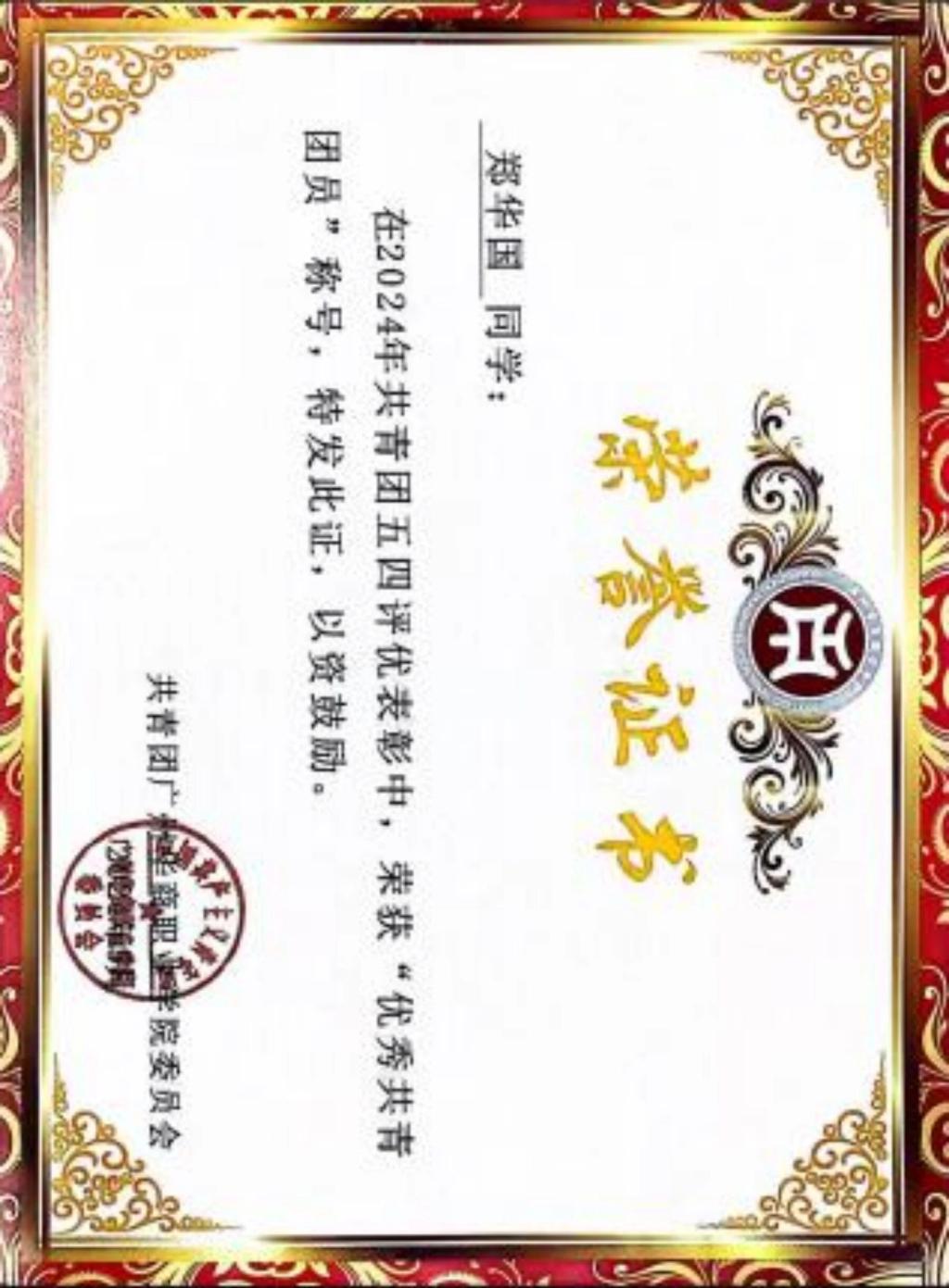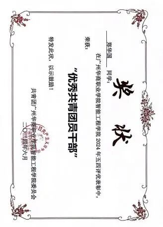 6.荣获广州华商职业学院“优秀共青团员”、智能制造与汽车学院“优秀共青团员干部”、“优秀班干部”称号;