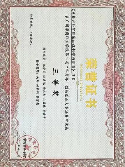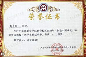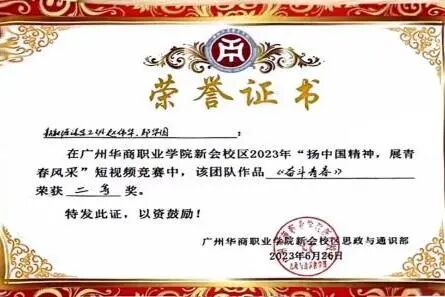 4.2023年荣获广州华商职业学院第二届“华商杯”创新创业大赛三等奖;