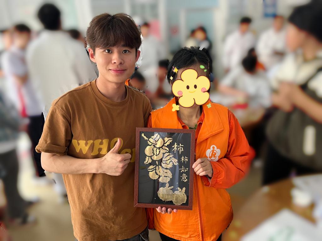他始终秉持对美与文化的热忱,将美育实践融入学习、工作与生活。作为学院宣传部干部,在推文排版、展板设计中注重色彩搭配与版式逻辑,让宣传内容既传递信息又兼具视觉美感,以专业审美助力学院品牌传播;主动参与香港研学活动,在多元文化交融中拓宽审美视野;投身校园非遗文化体验活动,沉浸式学习传统技艺,体悟匠心之美;踊跃参与手工创作、知识答题等活动,在实践中探索创意表达、积累美学知识,实现外在审美与内在修养的同步提升。