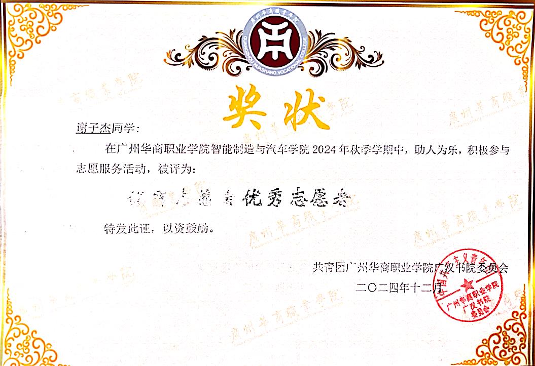 8.【院级】2024-2025 学年度广州华商职业学院江门校区智能制造与汽车学院“优秀志愿者”;