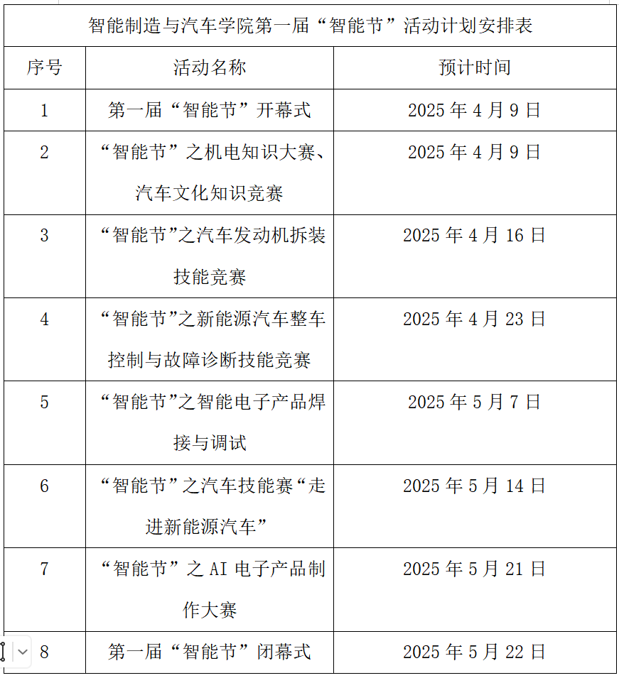 为了丰富校园文化生活,提升学生实践能力和创新思维,激发同学们对机电、汽车知识的兴趣,增强对机电、汽车文化知识的了解。智能制造与汽车学院于2025年4月9日下午在博...